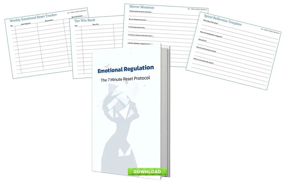 The 7-Minute Reset Protocol: A science-backed, step-by-step system for interrupting emotional spirals on the spot — even in moments of conflict, overwhelm, or shutdown. This isn’t breathwork before the chaos. It’s a cognitive + somatic reset during it.